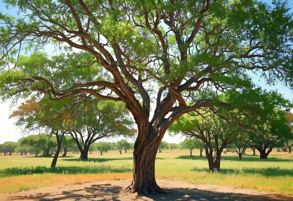 In Texas and Oklahoma, mesquite spreads across open plains, creating a stark yet beautiful contrast with golden grasses.