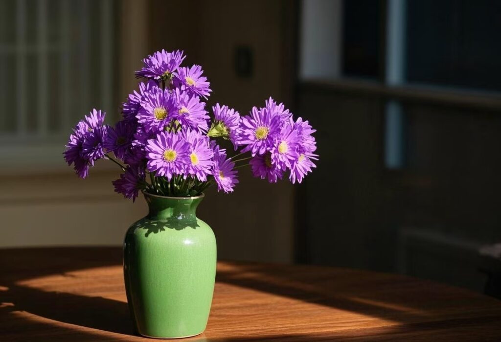 There’s something undeniably captivating about the combination of a green vase with purple flowers. Whether it’s the striking contrast of colors,