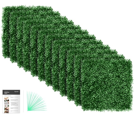 $37.99ClearBlanco árticoNegro obsidianaVerde esmeraldaMarrón ChocolateRedwoodflybold – Paneles de pared de césped de 20 x 20 pulgadas, paquete de 12 unidades, con protección UV, para decoración de interiores y exteriores, valla de privacidad para decoración de patios traseros