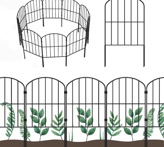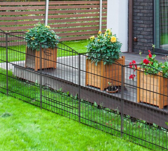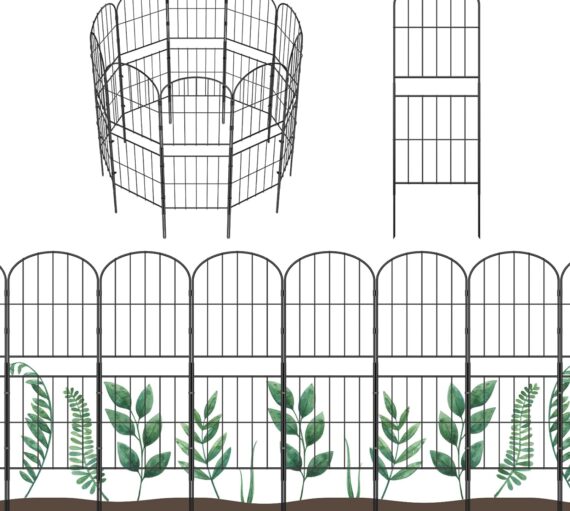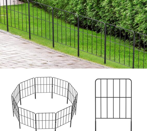 INJOPEXI Valla de jardín 6 paneles de 11.8 pies de largo x 30 pulgadas de alto, valla decorativa para jardín con 5 paneles + 1 puerta de alambre inoxidable sin excavar, valla de jardín de animales para exteriores, para patio trasero, patio, color negro