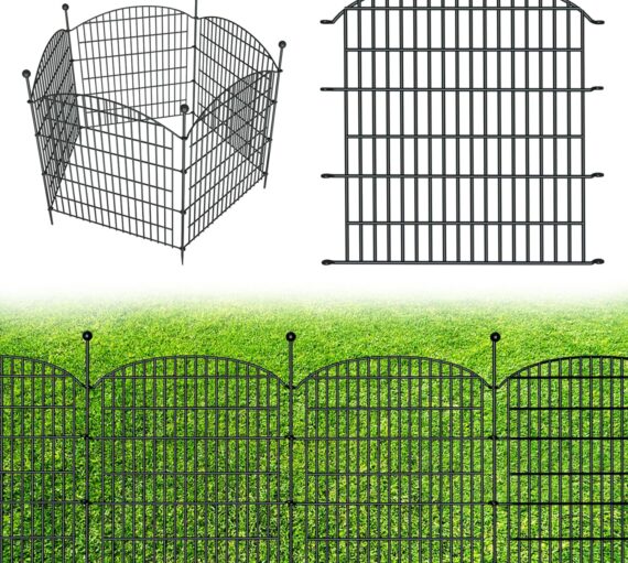 Samamixx Valla decorativa de jardín, paquete de 10 cercas sin excavación, 10.83 pies de largo x 22 pulgadas de alto, borde de barrera de animales para perros, conejos, mascotas, paneles de valla de metal con estacas sin excavar para patio al aire libre, p