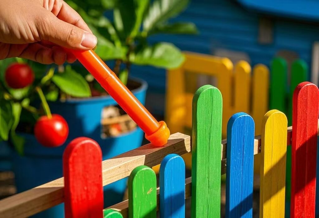 🛠 Use wood glue for durability or a hot glue gun for a quick hold. Let the glue dry completely before moving the fence.