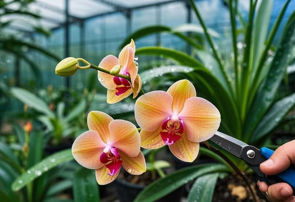 🚫 Avoid: Repotting while the orchid is in bloom – wait until flowers fall off.
