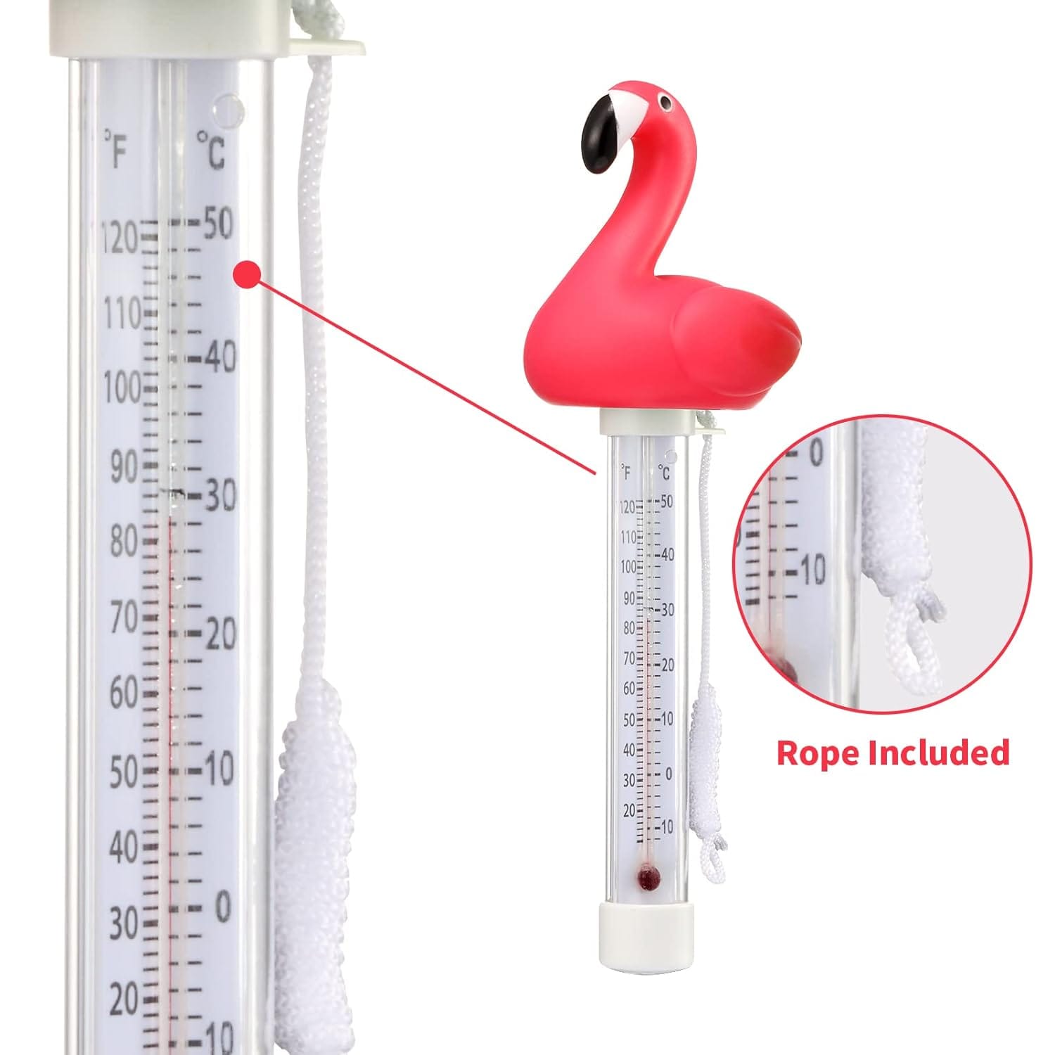 - Rope Included: Each Floating Pool Thermometer has a rope attached. You can fasten it at the side of the pool, so it won’t float away