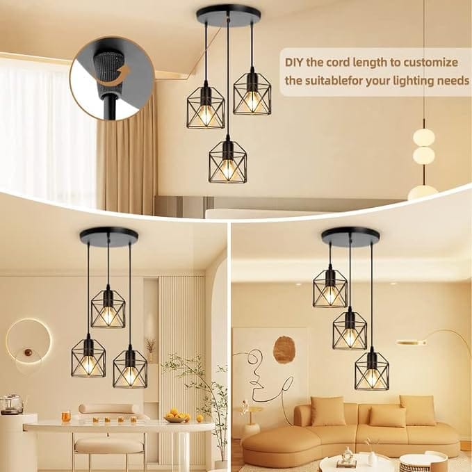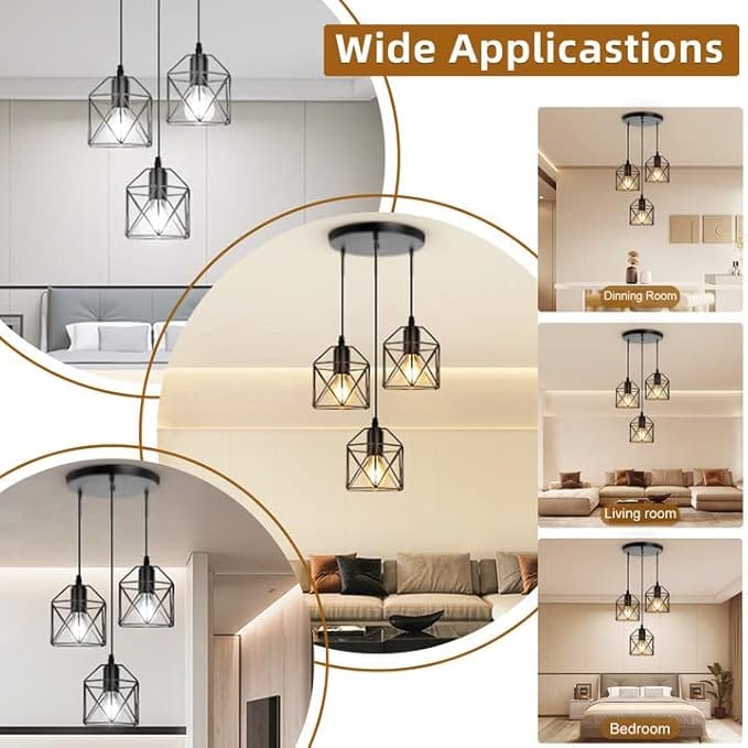 Be the first to review “3-Light Pendant Light Fixtures, Farmhouse Kitchen Island Light Fixture, Industrial Hanging Pendant Lighting for Dining Room Bedroom, Black Metal Cage Pendant, E26 Base, Bulbs Not Included”