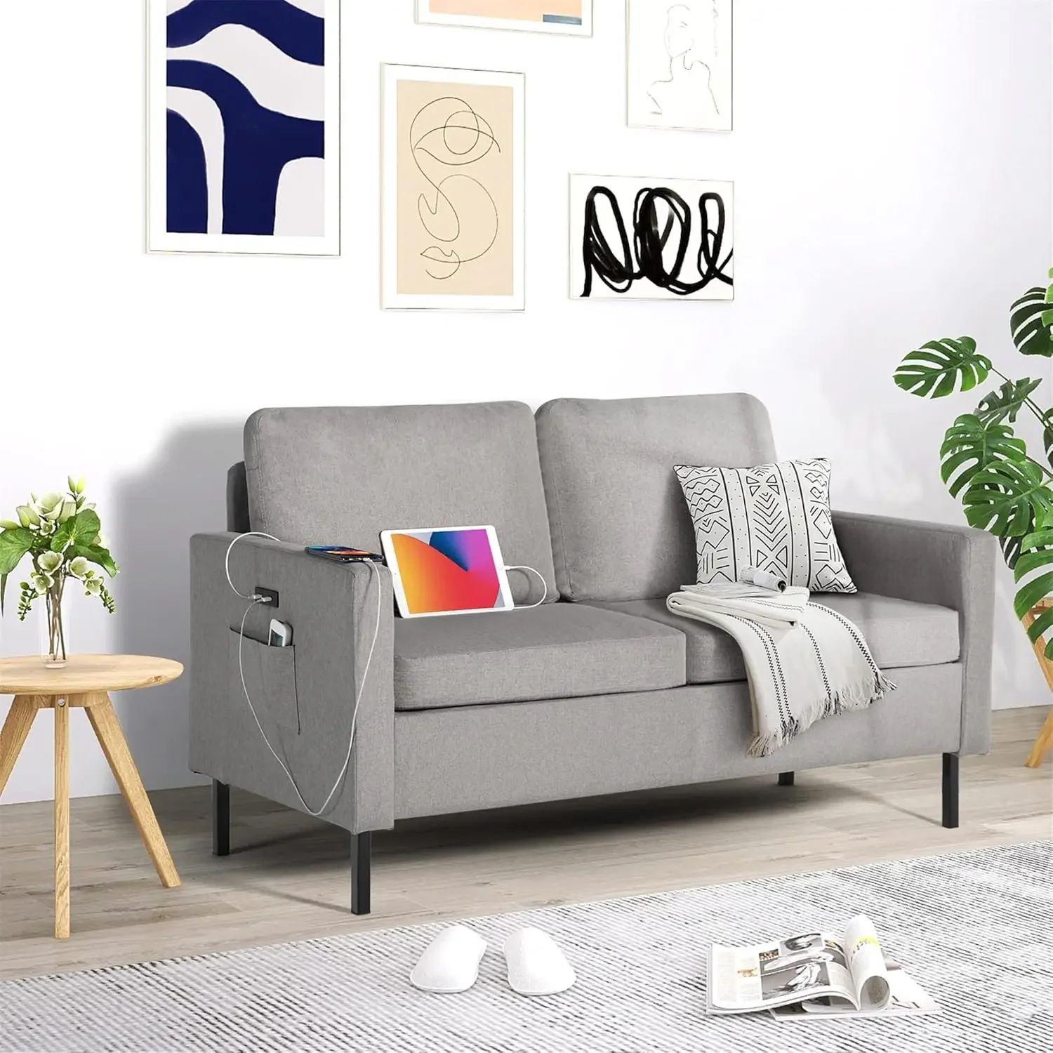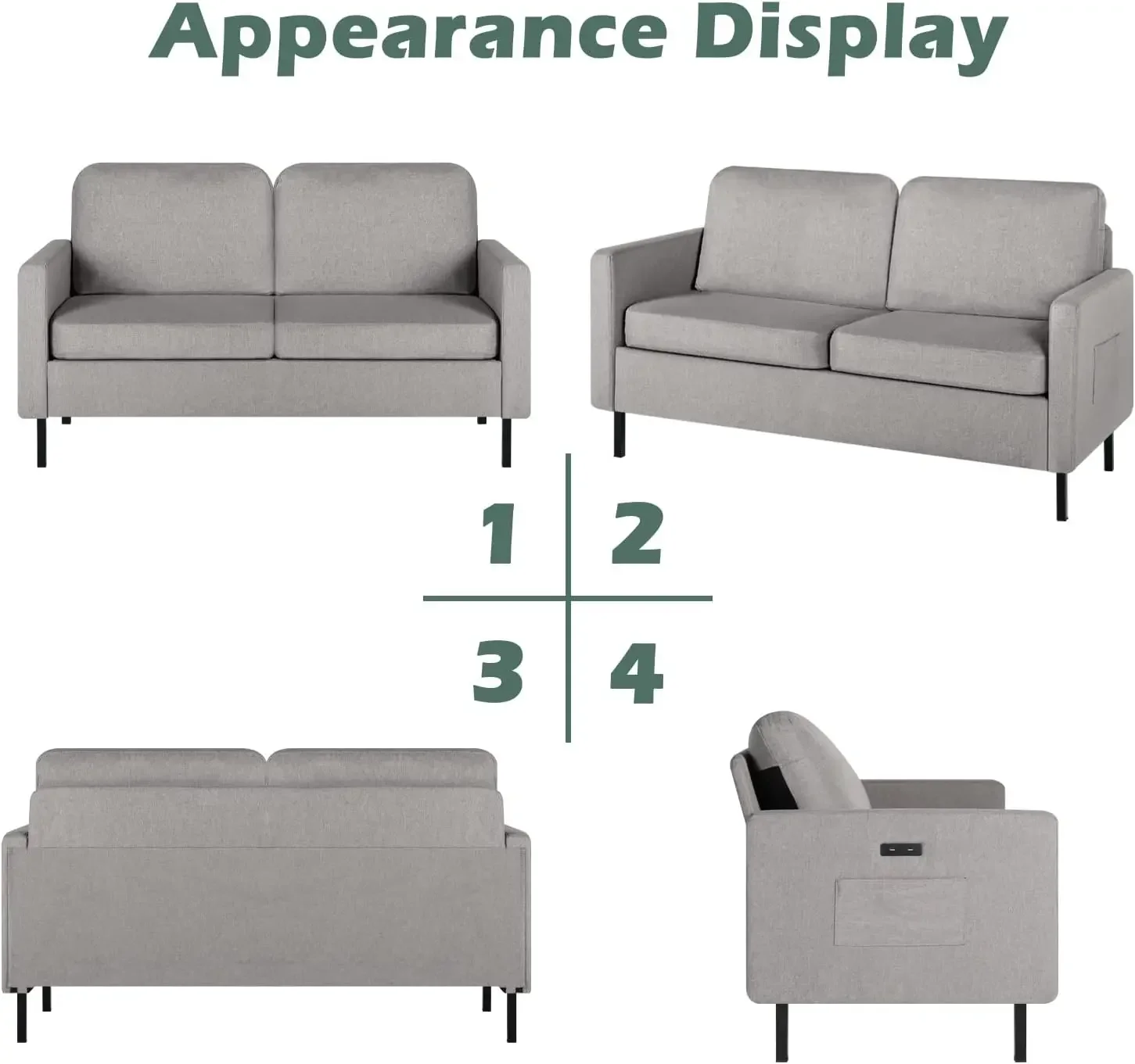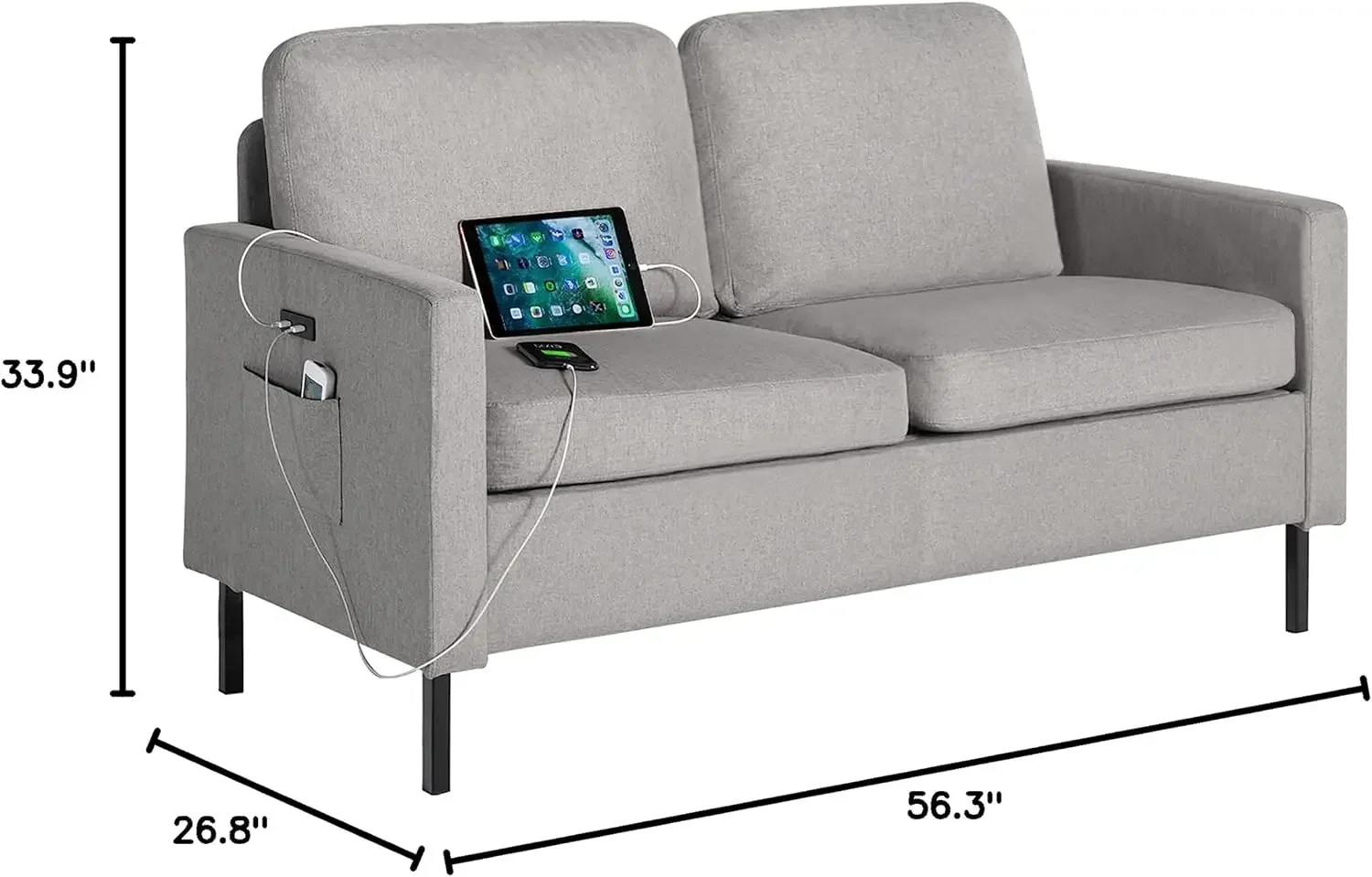 - 【Multi-scene use】56″ Love seat is suitable for small spaces, living room, bedroom, apartment, loft and office. Grey will go well with all your furniture.