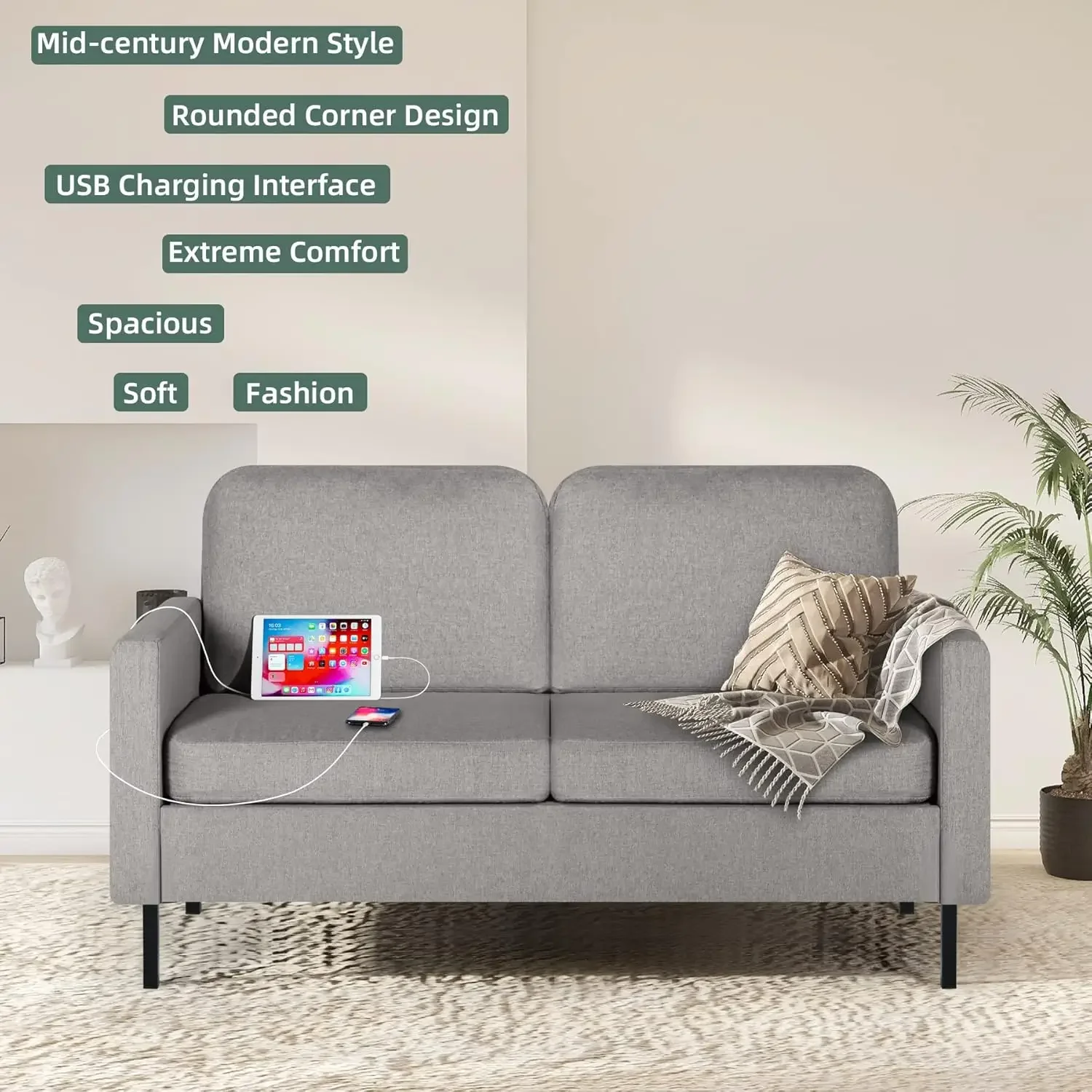 - 【High quality】 Rounded corner design makes this loveseat more unique and fashionable. Fine linen fabric is breathable and durable. And the cushion is filled with high resilience sponge and spring, has best resilience and softness.