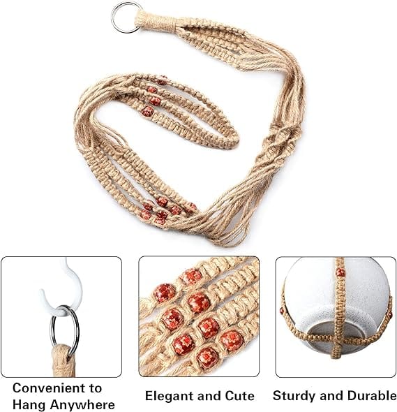 • PREMIUM MATERIAL – Made of hand knotted natural jute rope, green and pollution-free, to hold up the beautiful plant pots symbolizing vitality, make the house one step closer to nature.