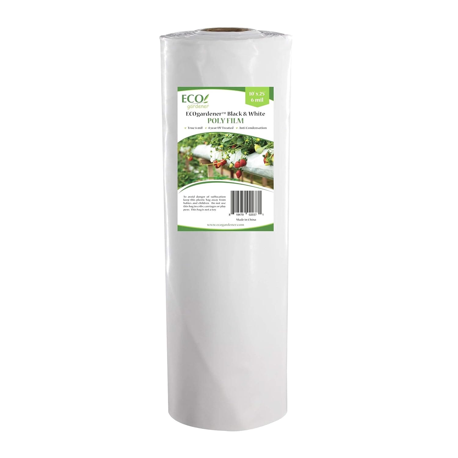 Black and White Poly Film – 10’ x 25’ 6mil, 4 Year UV Treated, Heavy Duty Polyethylene Sheeting by ECOgardener