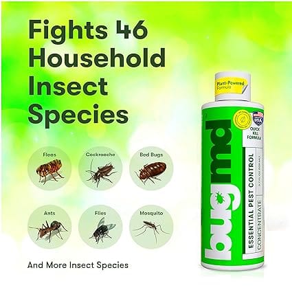 - Eliminate Home Invading Pests: BUGMD is the effective way to target hundreds of indoor and outdoor pests including ants, fleas, mosquitoes, roaches, mites, moths, spiders and tons more This essential oil powered spray is the perfect solution to keep your home, yard and other spaces pest free without ever sacrificing your family’s health and safety (when used as directed).