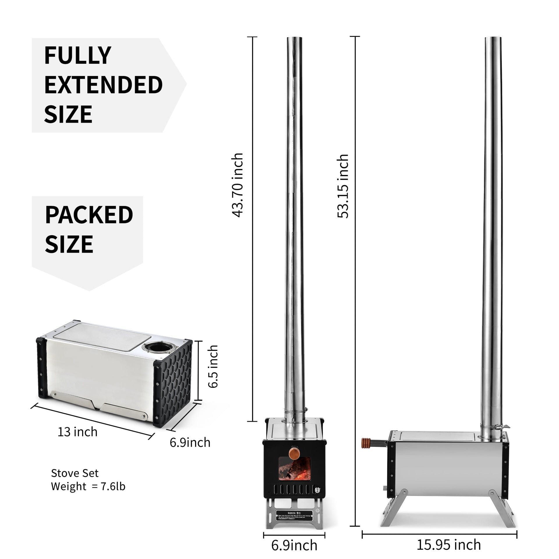 Specifications (Length*Width*Height): Transparent glass on both sides with fireside frame, standard type, glass type camping version