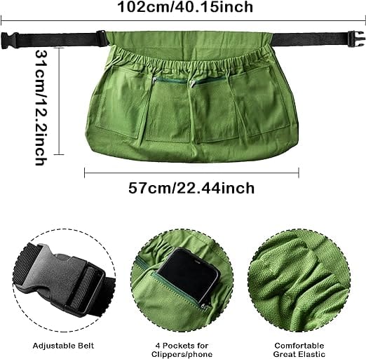 With 4 extra pockets:Harvesting apron with 4 extra pockets to store your scissors, phone, keys, seed packs and more.The zipper design at the pocket ensures that items will not fall easily when you are working.