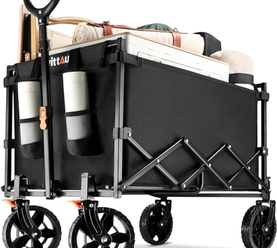 - ✅[Reliable & Smooth Transport] Constructed with a strong steel frame, our collapsible wagon could transport up to 200 lbs. All-terrain wheels’ built-in double bearings ensure smooth pull and easy transport on multiple ground surfaces.