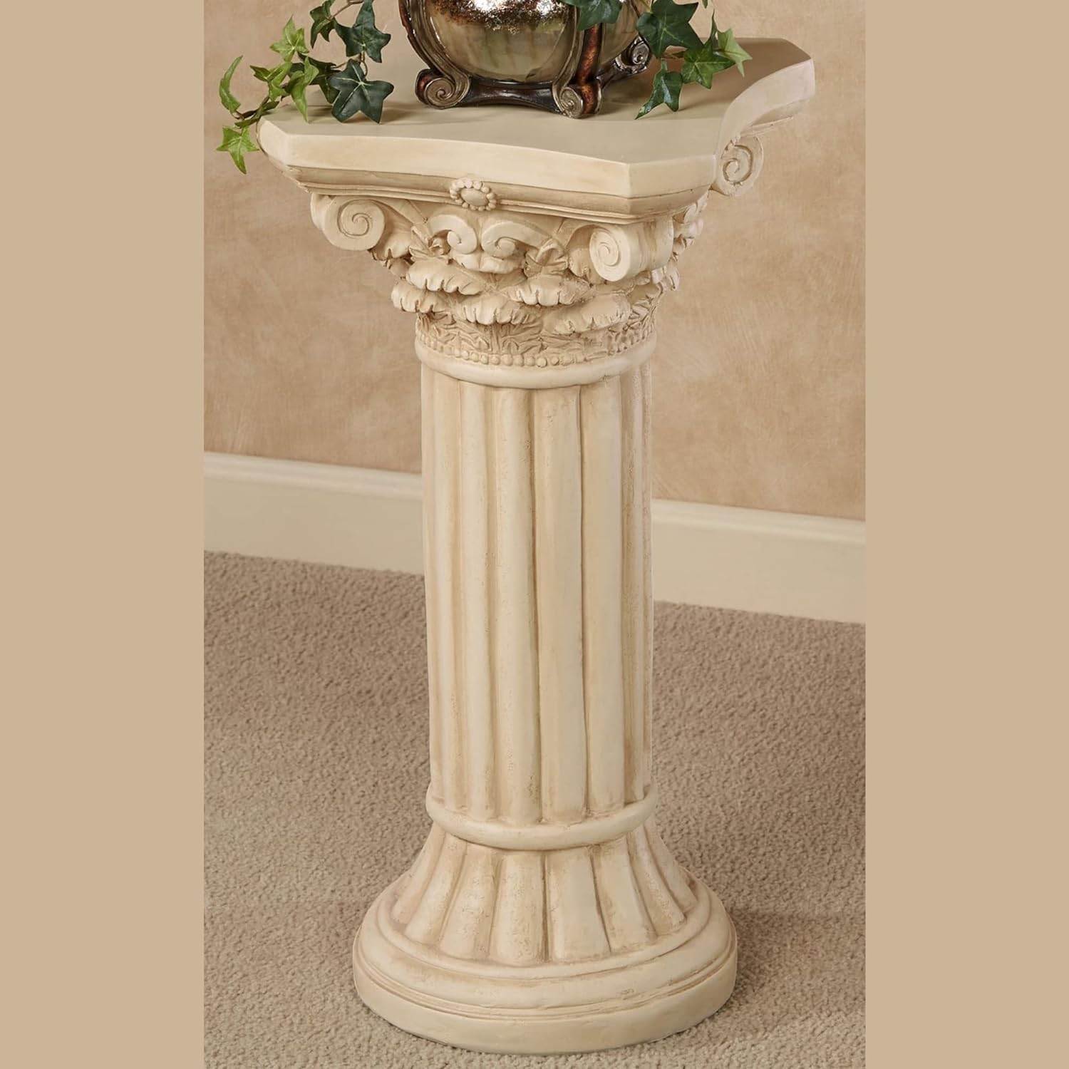 Corinthian Column Pedestal - Ivory Wash - Roman Style - Indoor/Outdoor Display - Small Size - 24 H, Top is 12 Inches Square, Weighs 11 lbs