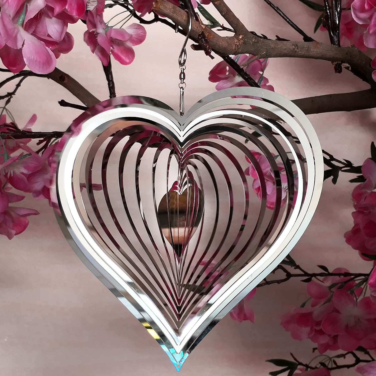 - Heart wind spinner made from durable stainless steel material by laser-cutting technology to form vivid shape, makes it flexible and strong. can adapt to all kinds of weather, whether sunny, cloudy or rainy.With strong corrosion resistance, wear resistance and rust resistance.
