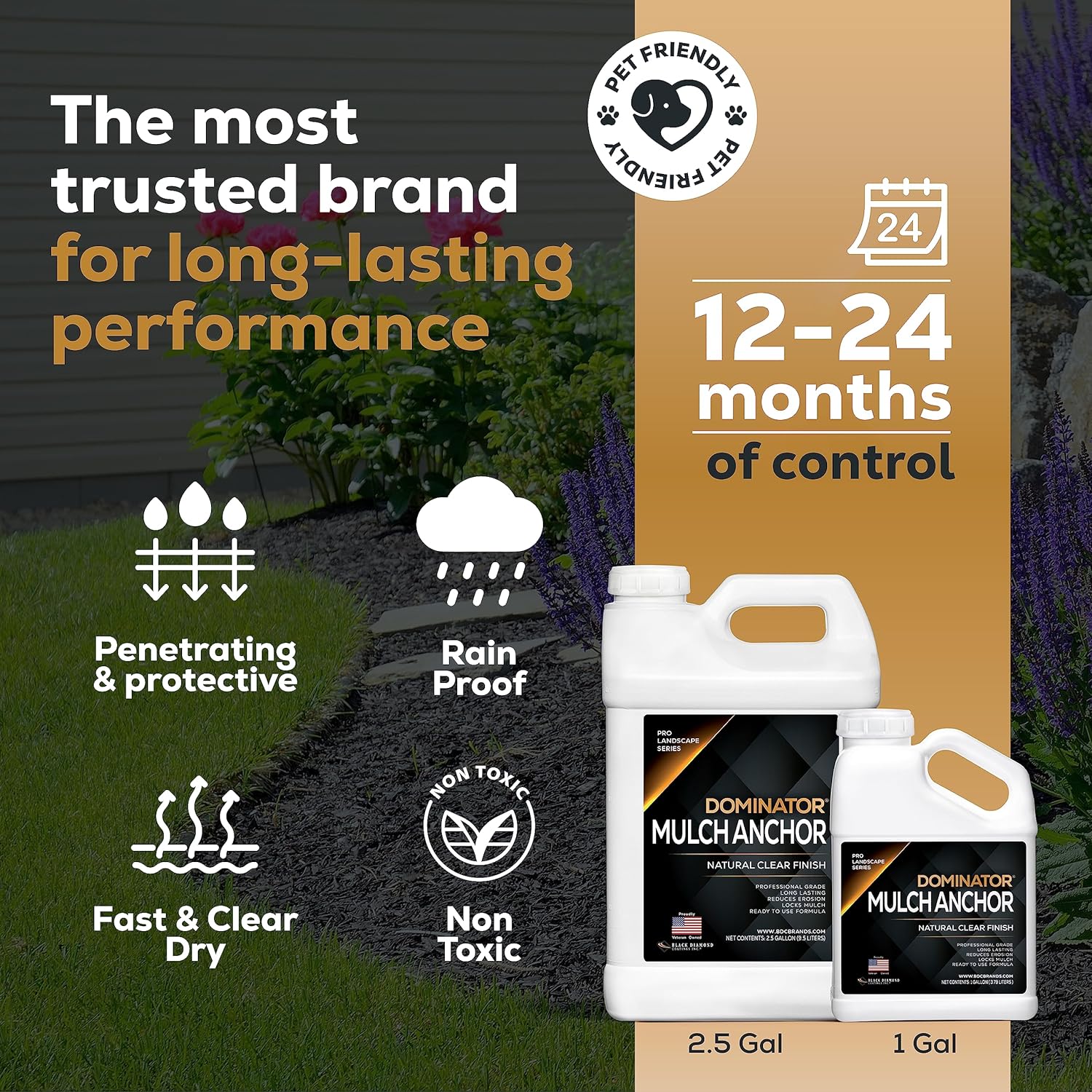 - WORRY FREE LANDSCAPING – Mulch Anchor is water permeable, non-toxic, safe for pet paws, and its strong, water-based formula won’t harm your plants.