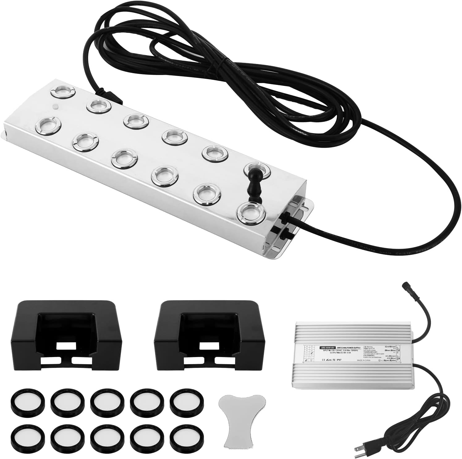 Dyna-Living Ultrasonic Mist Maker 12 Head Ultrasonic Pond Fogger 400W Humidifier Fog Machine Atomizing Plate with Buoy IP67 Waterproof Atomizer for Halloween Decoration Rockery Fishtank Landscape