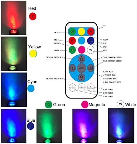 - 【Remote Control & Multi-function】:Pond lights can adjust 7 Colors (yellow,red,cyan,blue,green,magenta,red+green+blue), 4 dynamic effects(jump mode,twinkle mode,gradient mode,slow gradient mode), speed,brightness and set time.