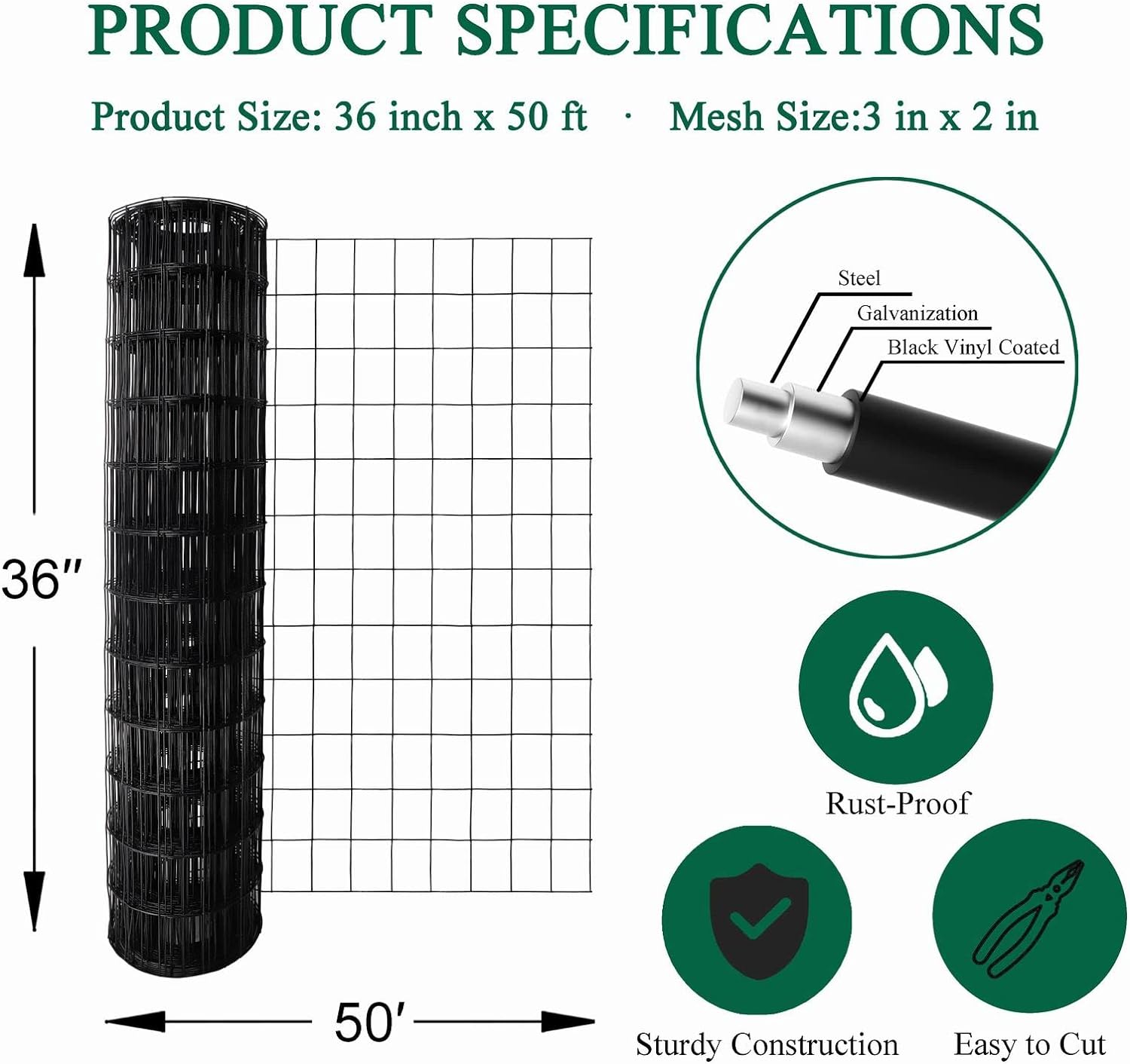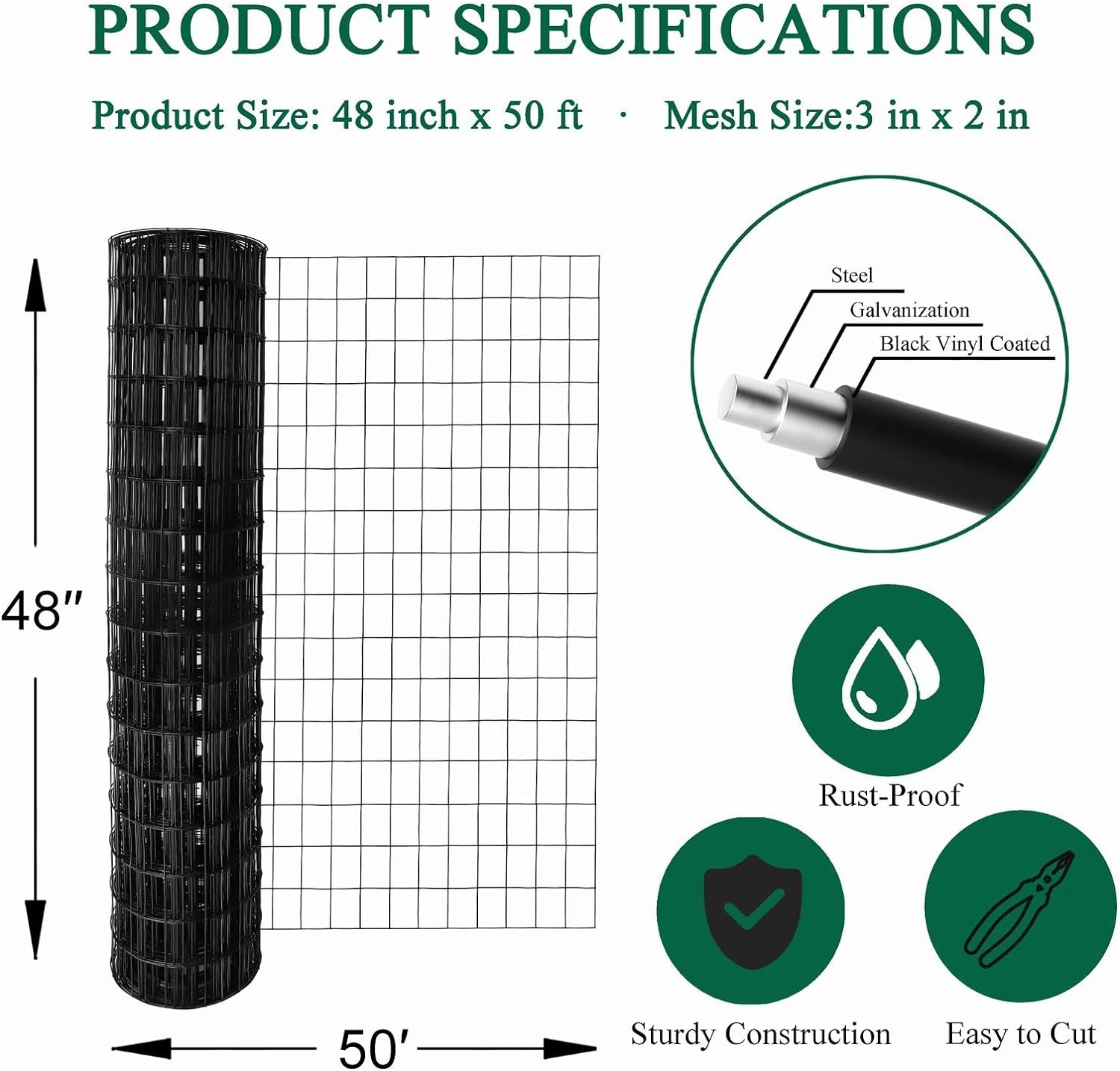 • FOREHOGAR La cerca de jardín de alambre soldado está hecha de alambre galvanizado resistente y luego recubierto con vinilo negro. A prueba de herrumbre y con larga vida útil.