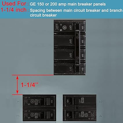 - Main Breaker Position: 1 1/4 inches spacing between main breaker and branch breakers.