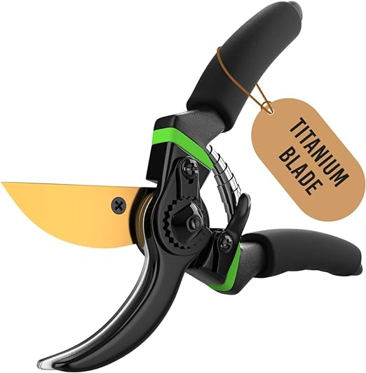 - ✅ PRECISION CUTTING — Our Pruning Shears offer precise cutting with a 7.5 cm (2.95 inches) long blade and a 3.6 cm (1.42 inches) wide opening, making it easy to trim branches of different sizes. The titanium-coated bypass mechanism ensures clean and efficient cuts, keeping your plants healthy. Whether you’re reaching for distant branches or working with various stems, these shears provide accuracy and simplicity, helping your garden look its best.