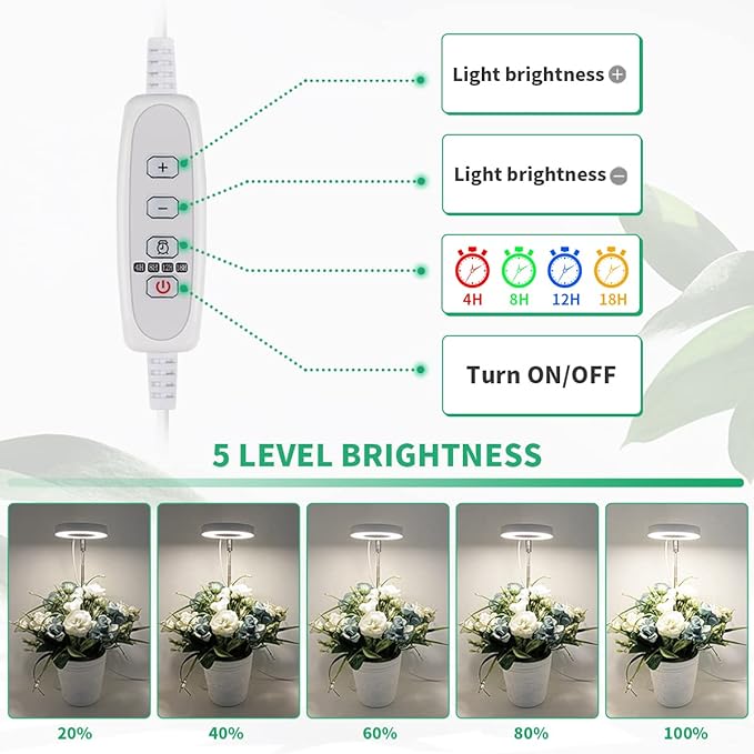- 6000K White Circle Lights—Equipped with super bright 6 Red+6 Blue+36 White LED beads, this indoor seedling light provides a full spectrum like sunlight to promote plant growth, that is professionally designed for indoor garden potted plants.