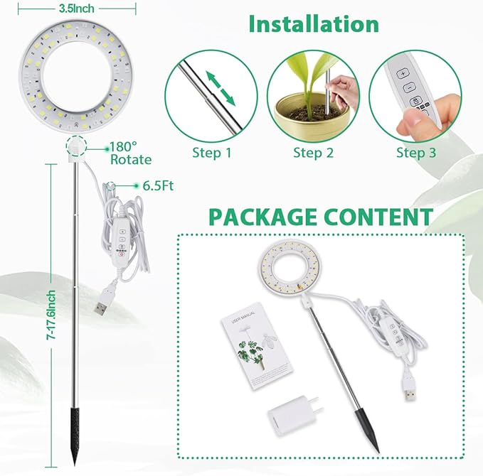 - Easy to Use—Just within 10 seconds! Place the pole into the soil, then adjust the lamp to the best lighting position according to your needs. Easy & Convenient!