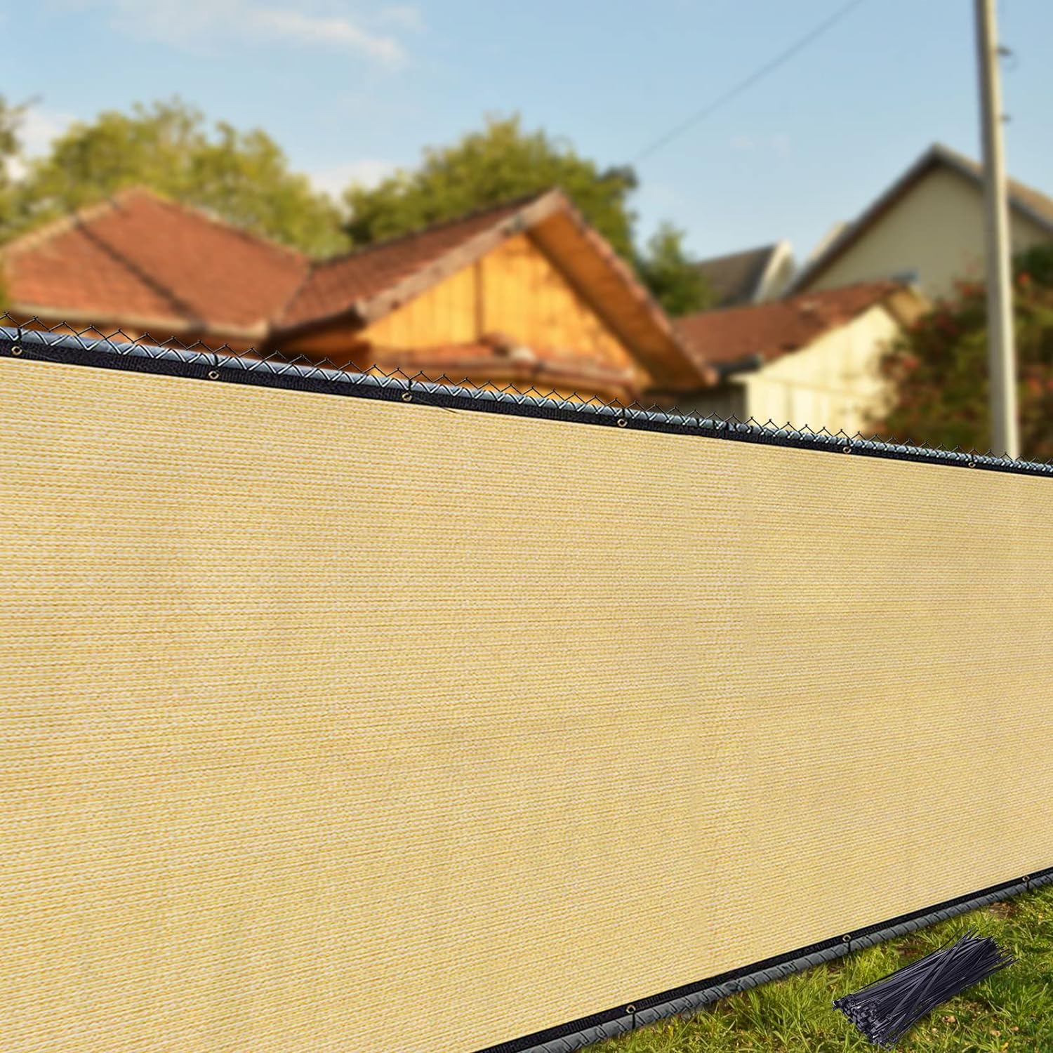 • Los ojales se colocan cada 12.6 pulgadas verticalmente, 24 pulgadas horizontalmente, cada esquina tiene 3 ojales. Fácil de fijar la pantalla de la valla en su lugar con bridas incluidas (80 piezas). Compatible con valla de alambre, empalizada de madera, valla de eslabones de cadena, barandillas y acurrucamientos