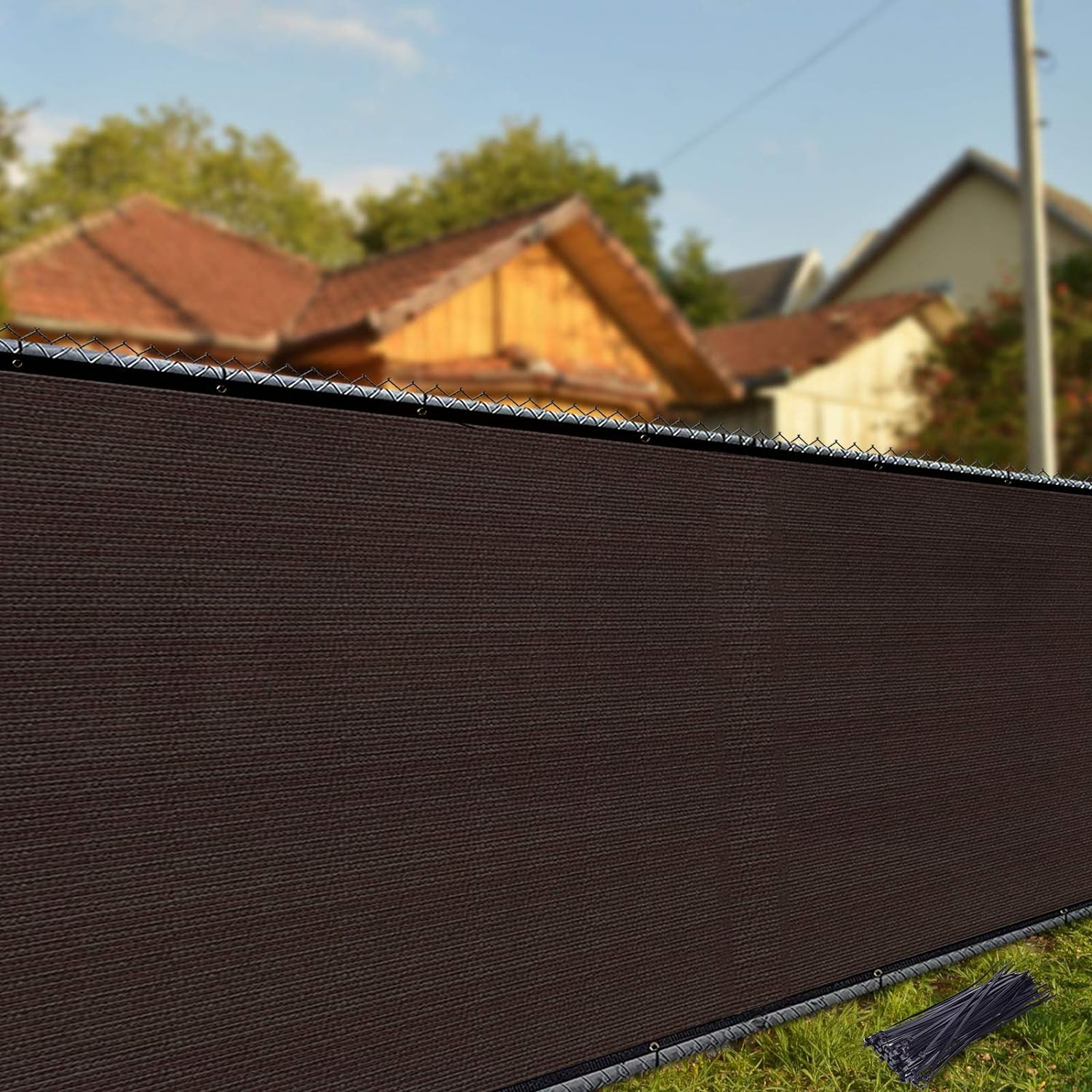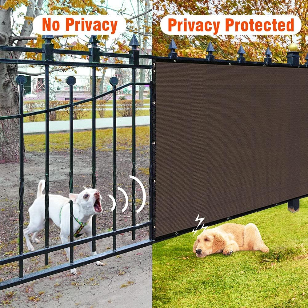 iCover – Valla de privacidad de 6 x 50 pies, barrera de malla para parabrisas de jardín, fijaciones reforzadas y ojales de latón incluidos, color marrón