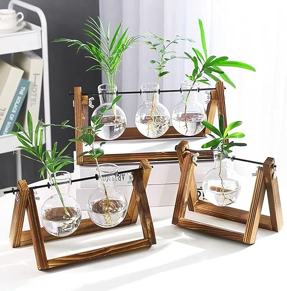 • ❀ Minimalistive Look: Retro wooden rack combined clear glass bulb vase give off a nice decorative sense. 3 Bulb vase glass planter provides plenty of room for plant’s roots, great for plant growth and visible for observing its growth condition.