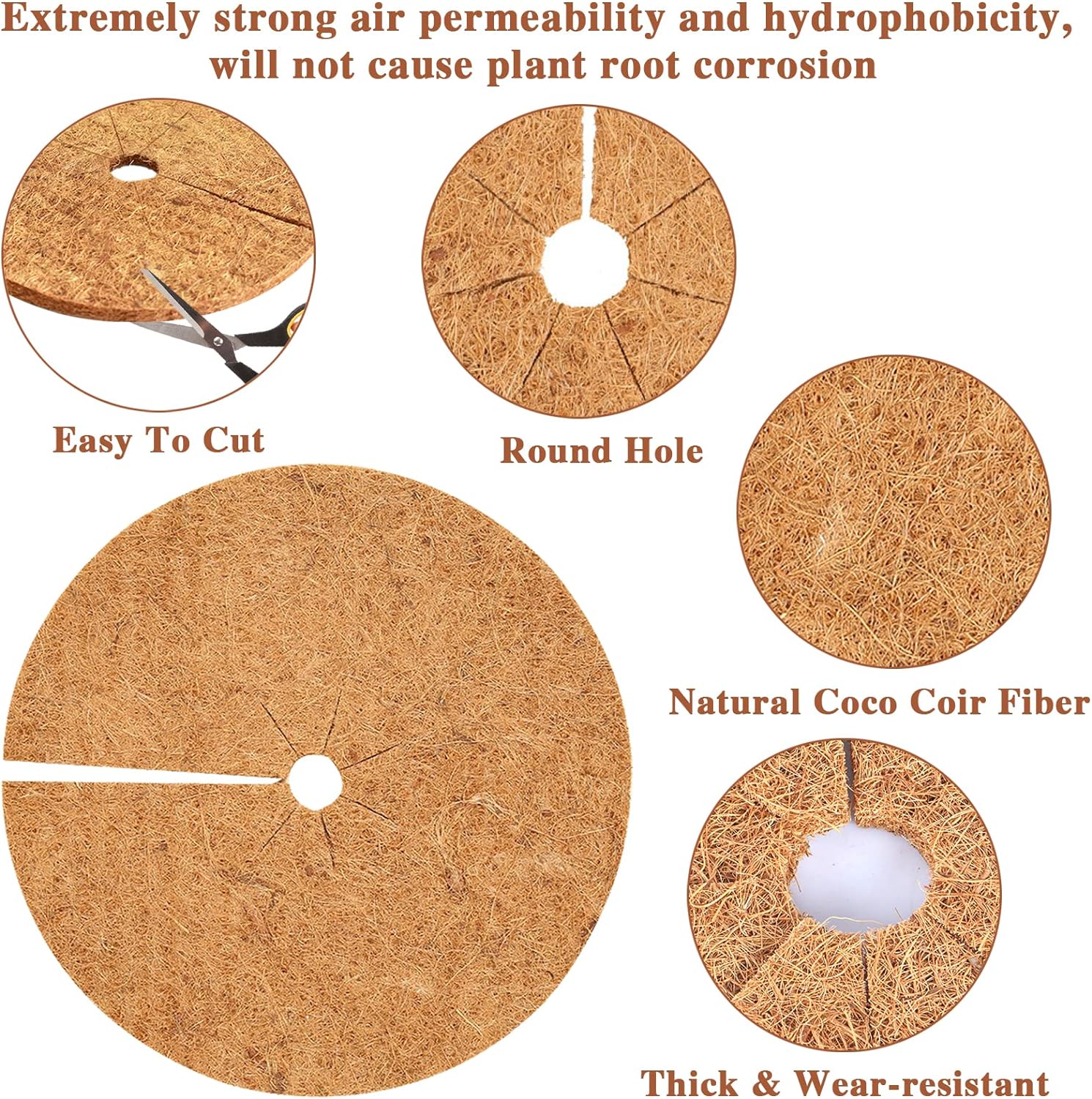 - 【Easy to Use and Trim】The coco mulch mat rings are 11.8 inches in diameter, they are lightweight and very easy to set up around the tree or plant stem, also you can trim center of coco mat to fit base of plant’s & shrubs. Hope it will bring you a pleasant shopping experience and please confirm the size before buying.