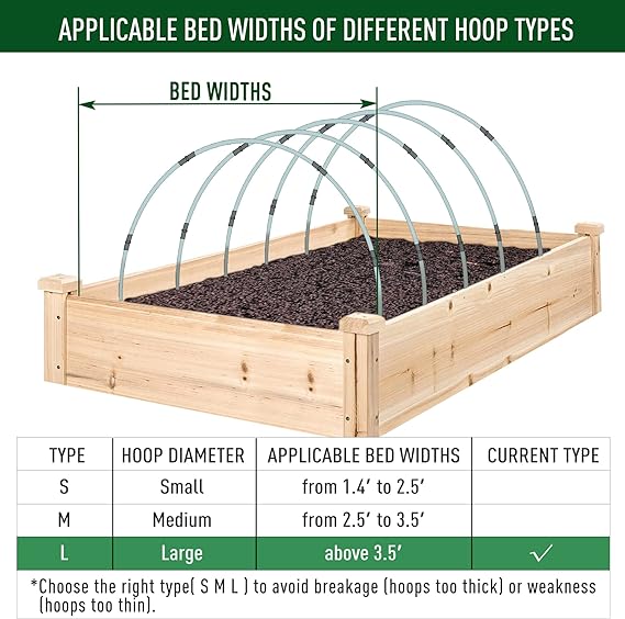 • 【TYPE- L】Large-diameter hoops, suitable for 3.5′ wide or wider beds. Please choose the correct material type for your bed to avoid the hoop breaking or becoming too weak.