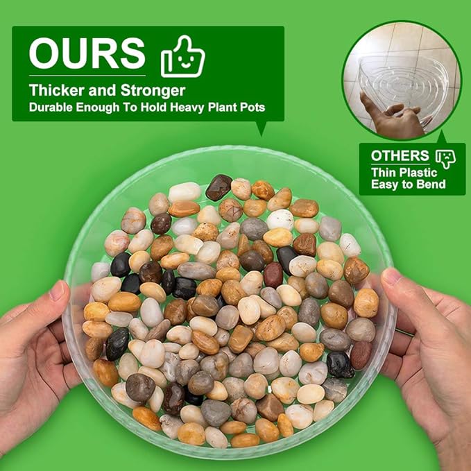 • 【Thicker and Sturdier than Regular Clear Plastic Plant Saucer】Our plant saucers are specially made of thick and strong plastic; making them thicker and stronger than others; Durable enough to hold heavy pots