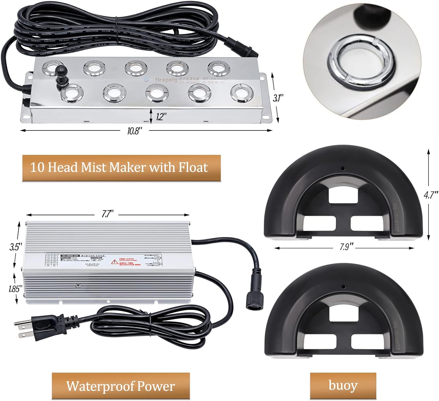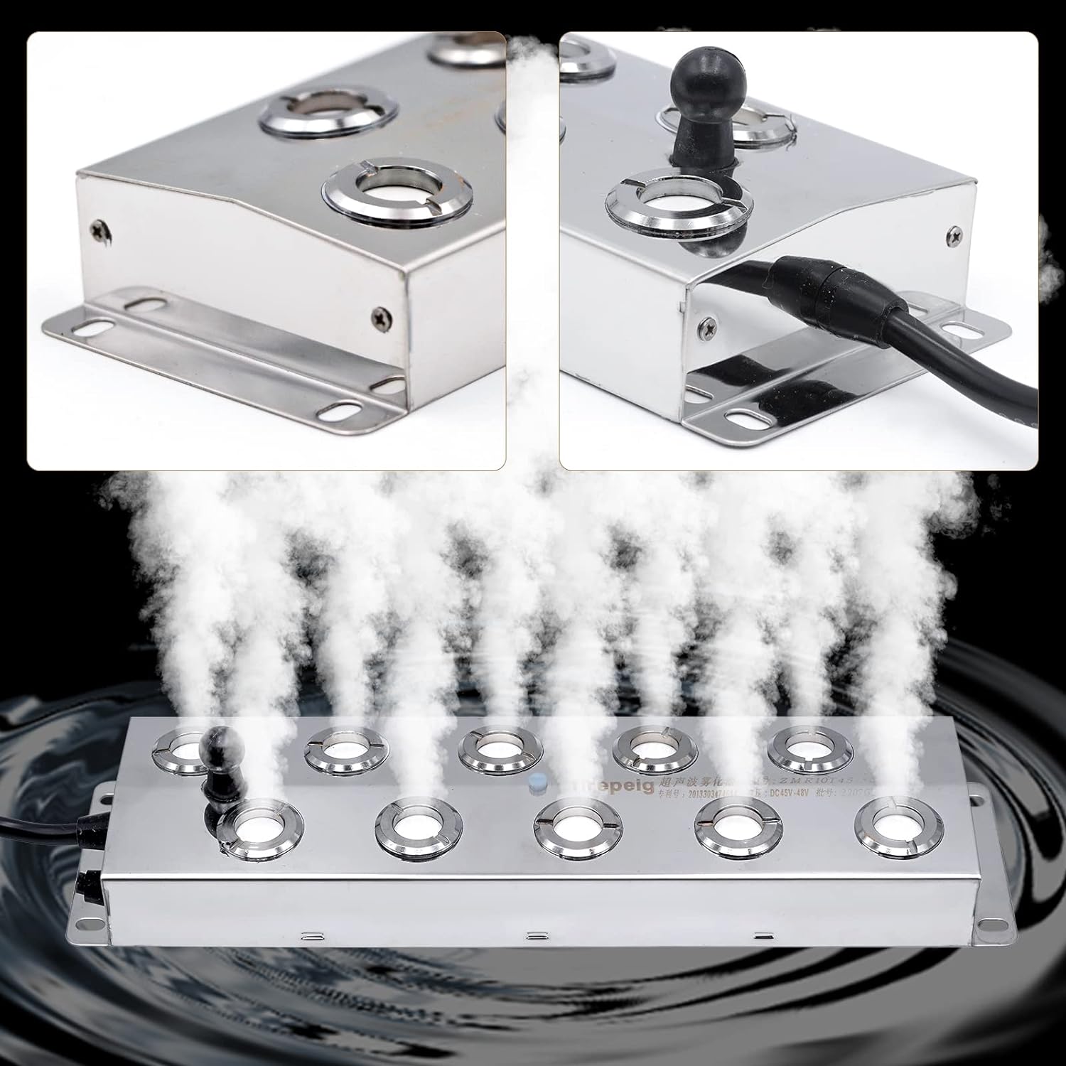 NOMAL Mist Maker Fogger 10 Head Stainless Steel Ultrasonic Mist Humidifier 18.7lb/h Water Fountain Pond Fog Atomizer with Waterproof Power Supply and Float (10 Head)