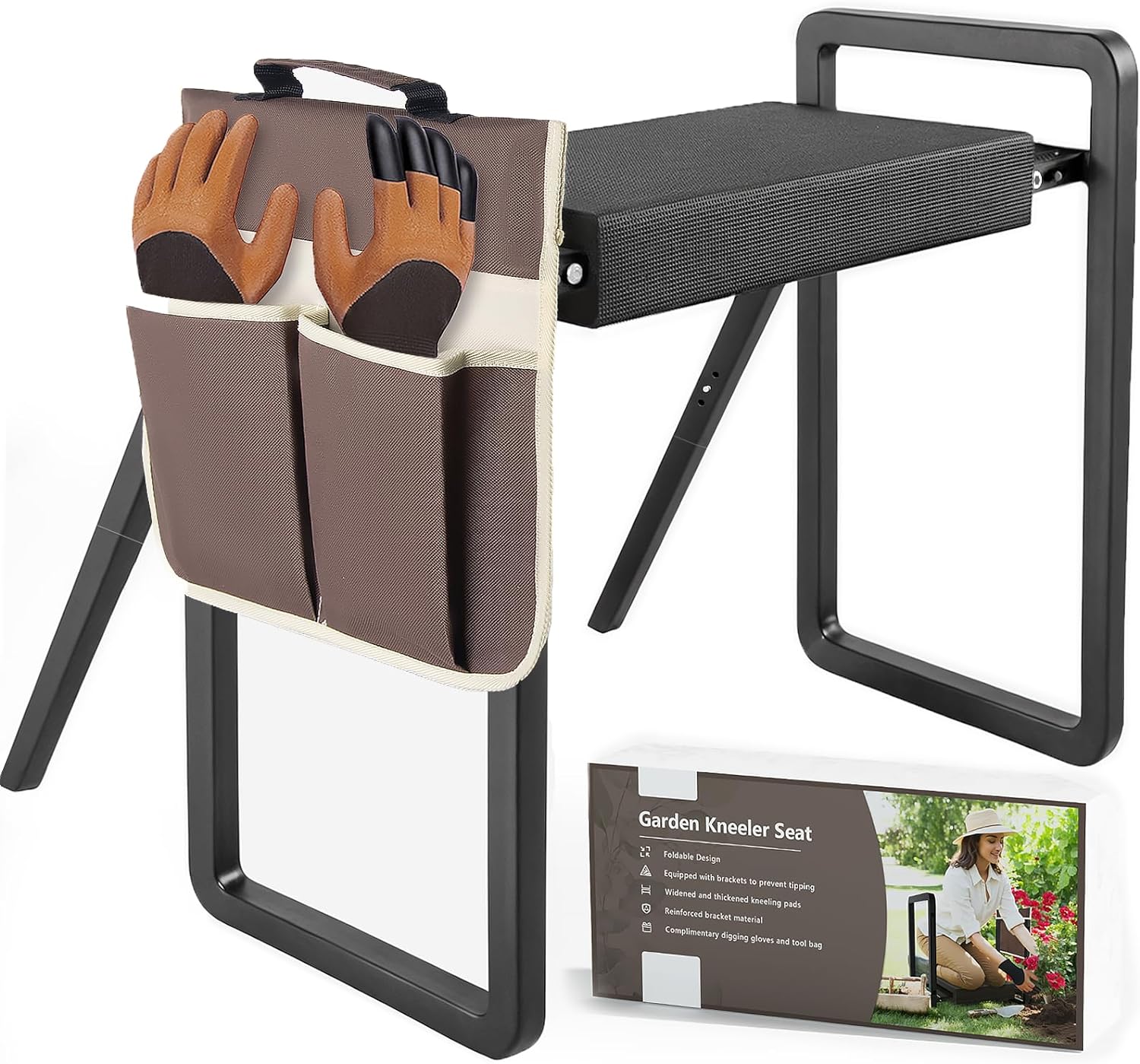 Onadak Upgraded Garden Kneeler and Seat,Foldable Garden Stool Heavy Duty Gardening Bench,Garden Kneelers for Seniors,Great Gardening Gifts for Women, Bench Comes with Tool Pouch & Gloves