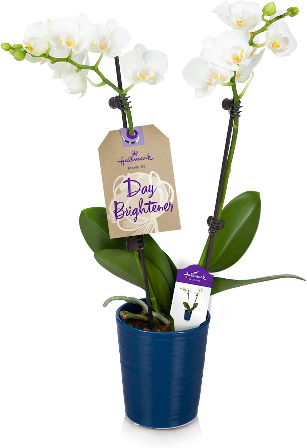 Orchid Flower Plant, White in 3″ Blue Ceramic Container, From Hallmark Flowers