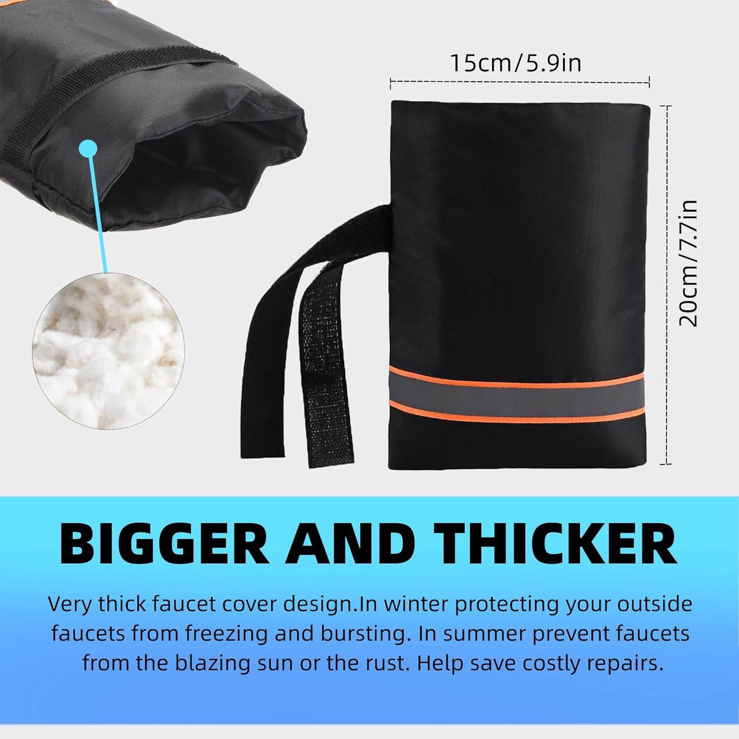 - Multiple uses, waterproof performance and thermal insulation.Provides warmth to your spigot in cold wet or blizzard weather,protects your faucet from UV, rain and other severe weather
