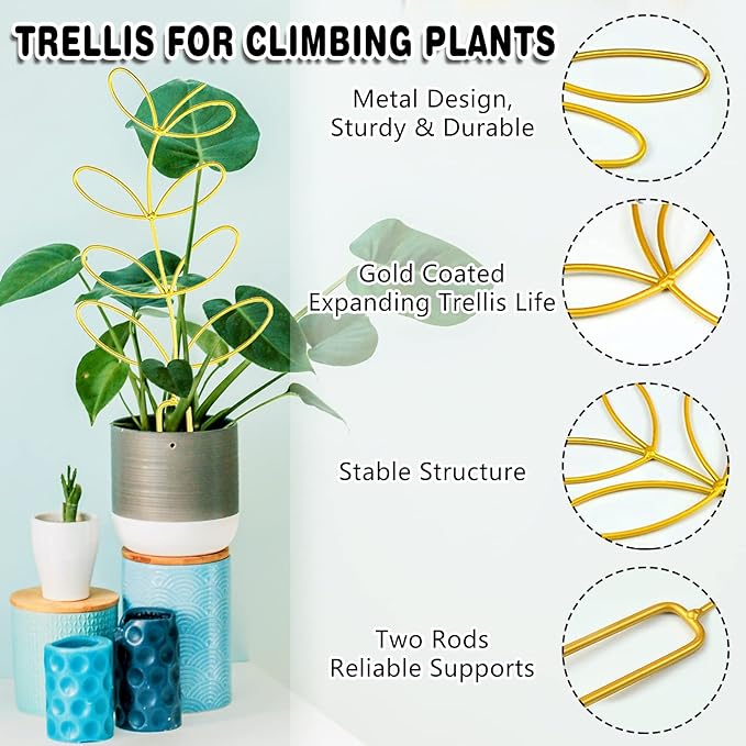 • [SUPPORT YOUR CLIMBING PLANTS] – The wire trellis can be used for potted plant, climbing plant, indoor plant and garden plant, it’s also actually supports the growth of your mini rose, african violets, miniature roses, hoyas, Ivy, Philodendrons, pothos, monstera or any other trailing or vining plant.