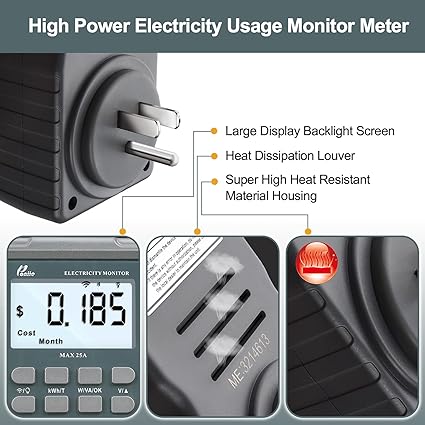 - EV CHARGER LEVEL 1 MONITOR: Ensure precise monitoring and safe using with our high power watt meter, redundant capacity design at Max.25A, 60-220v