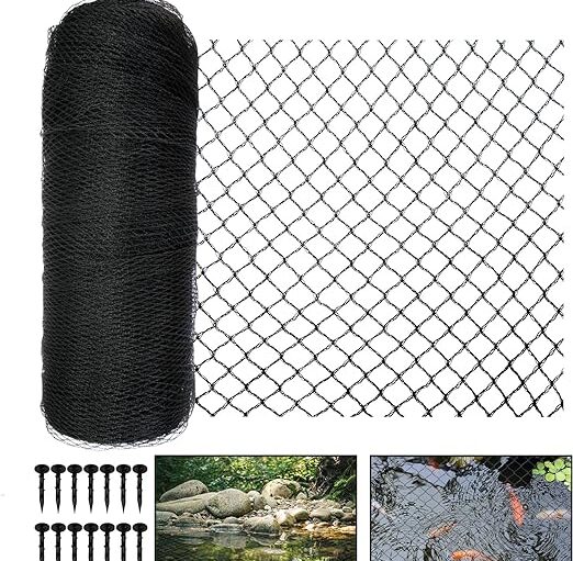 This item: POYEE Pond Netting for Leaves – 10×10 Ft, Pool Leaf Cover Net with Small Fine Mesh – Protecting Koi Fish from Birds, Cats – Stakes Included.
