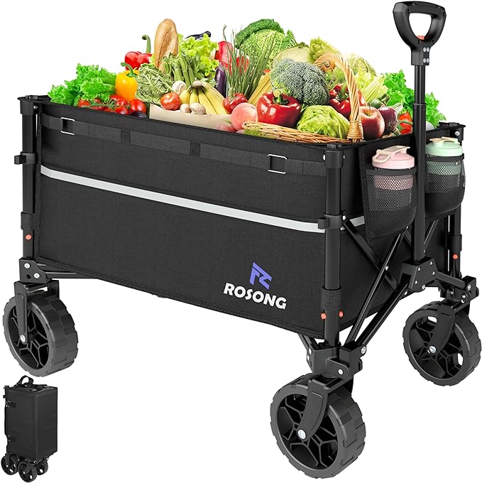 ROSONG Foldable Wagon Cart Collapsible – Folding Utility Wagons Carts with Wheels for Grocery Shopping Sports Garden Camping Beach