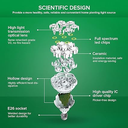 - SAFE & RELIABLE: The lamp body is made of special ceramic material, and the flame retardant grade reaches V0; the reinforced insulation structure design, no risk of electric shock, is safer; the whole shell material reaches the WF2 anti-corrosion grade, which is more reliable and durable; low IR, less heat radiation, avoiding close Distance exposure burns plants.