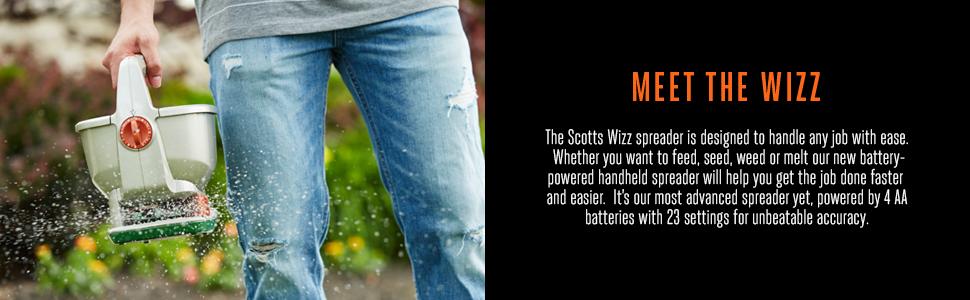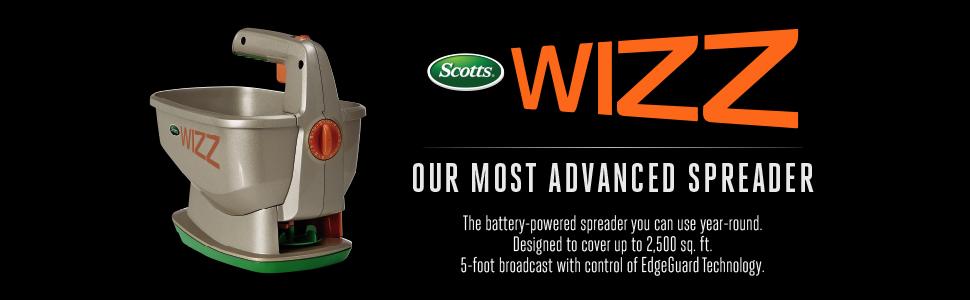 - Scotts Wizz Spreaders feature 5 ft. broadcast with the control of Edgeguard technology keeping product off non-lawn areas