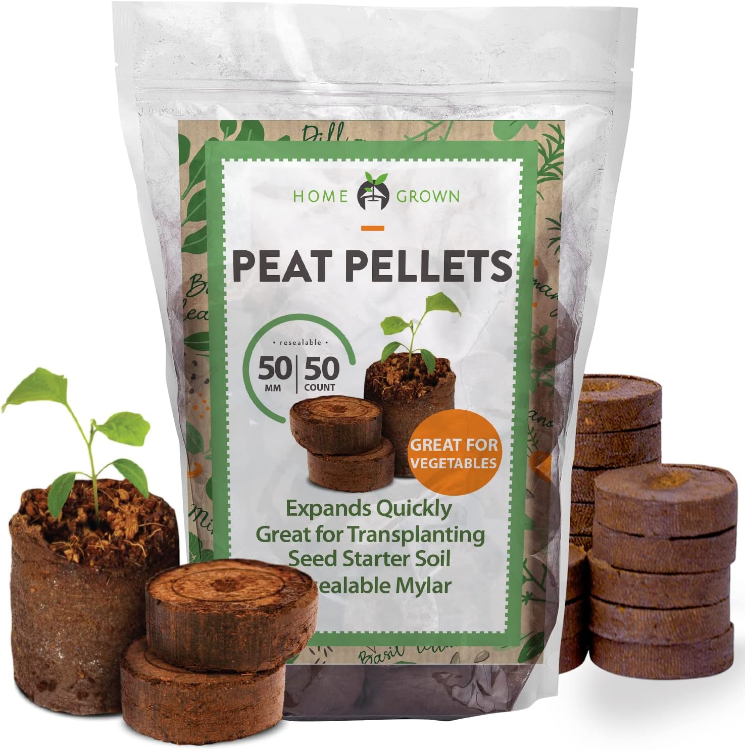 Seed Starter Peat Pellets for Gardening – Plant Seed Starter Pods for Planting Veggies, Flower Seeds, and Herb Garden Cuttings – Peat Moss Garden Starter Soil Pellets by Home Grown (50mm, 50count)