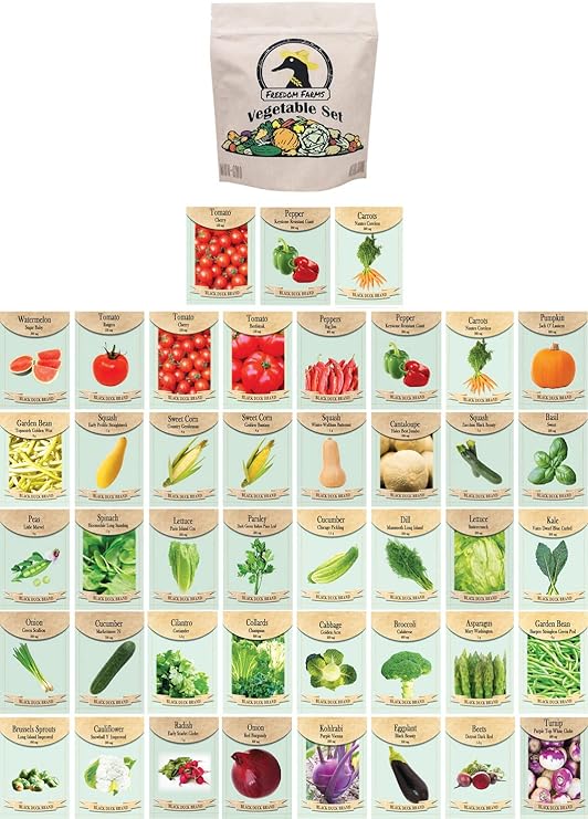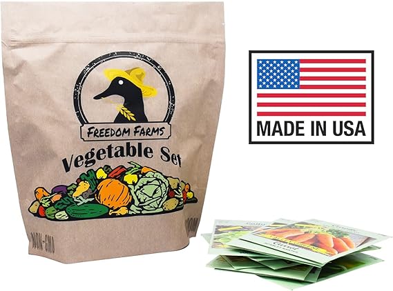 - Great way to stock up for the next planting season! Includes Freedom Farms Vegetable Set Mylar Bag for Optimal Seed Packet Storage!