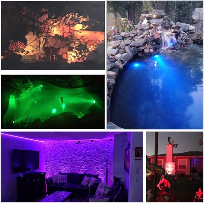 - 2、 36 LEDs&16 Colors: Each landscape light with 36 LED bulbs. The lights have 16 colors and 4 mode. The remote can adjust the brightness. Aand when you set in 4 modes this remote can adjust the color change speed. This colorful LED make a beautiful landscape lighting effect. NOTE: The White color is an RGB combined color, not real White.