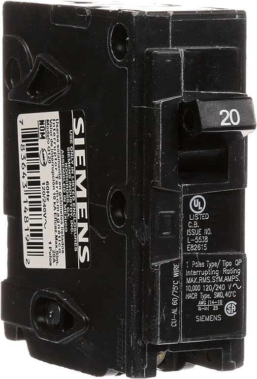 - Single pole, 20 Amp, 120V type QP Circuit Breaker