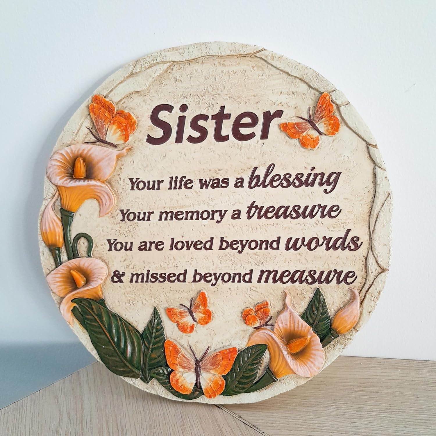 Sister Memorial Garden Stone, Memory Stones for Sister, Butterflies Flower Stepping Stones Memorial Gifts for Loss of Sister, Sympathy Gift for Loss of Sister, in Memory of Sister TNS10