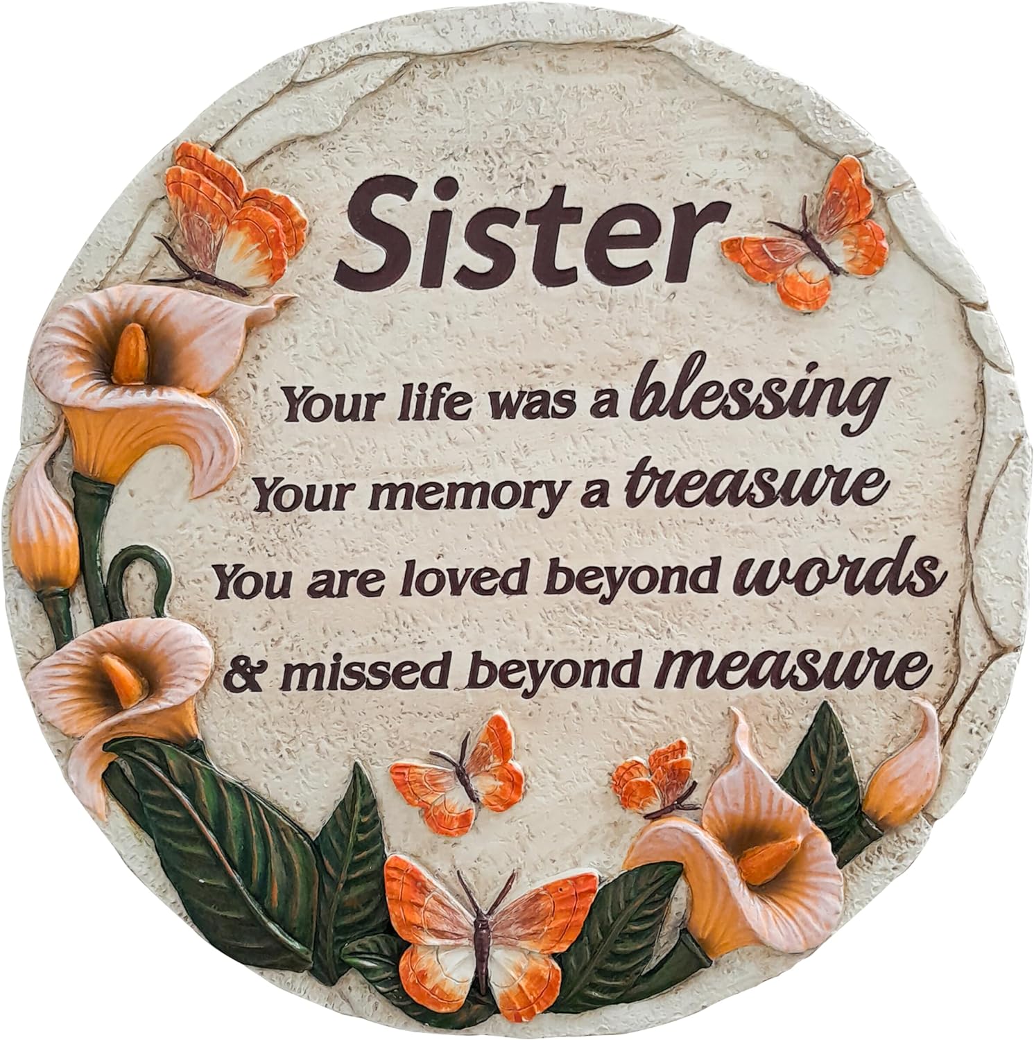 • Memorial gifts for loss of sister: Meaningful memorial sympathy gifts for loss of sister, deepest sympathies upon the passing of a sister, anniversary of death gift, sister’s day memorial, in memory of sister stone
