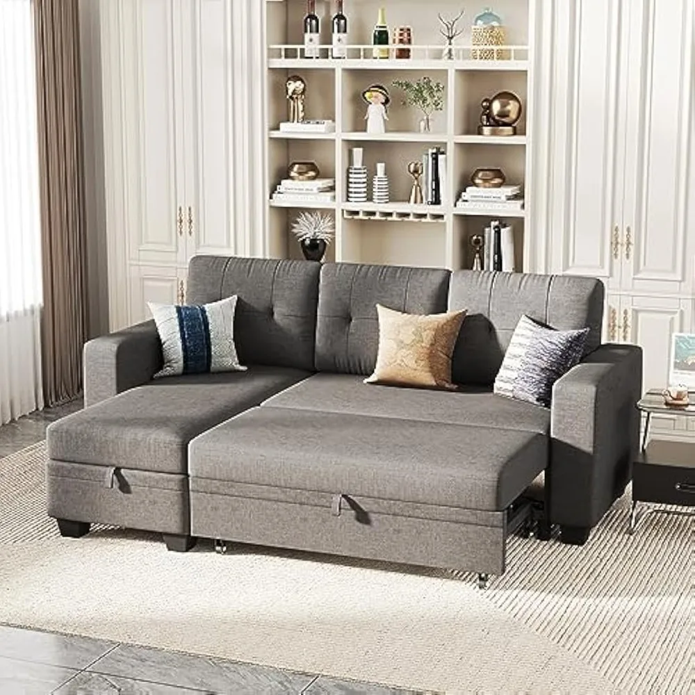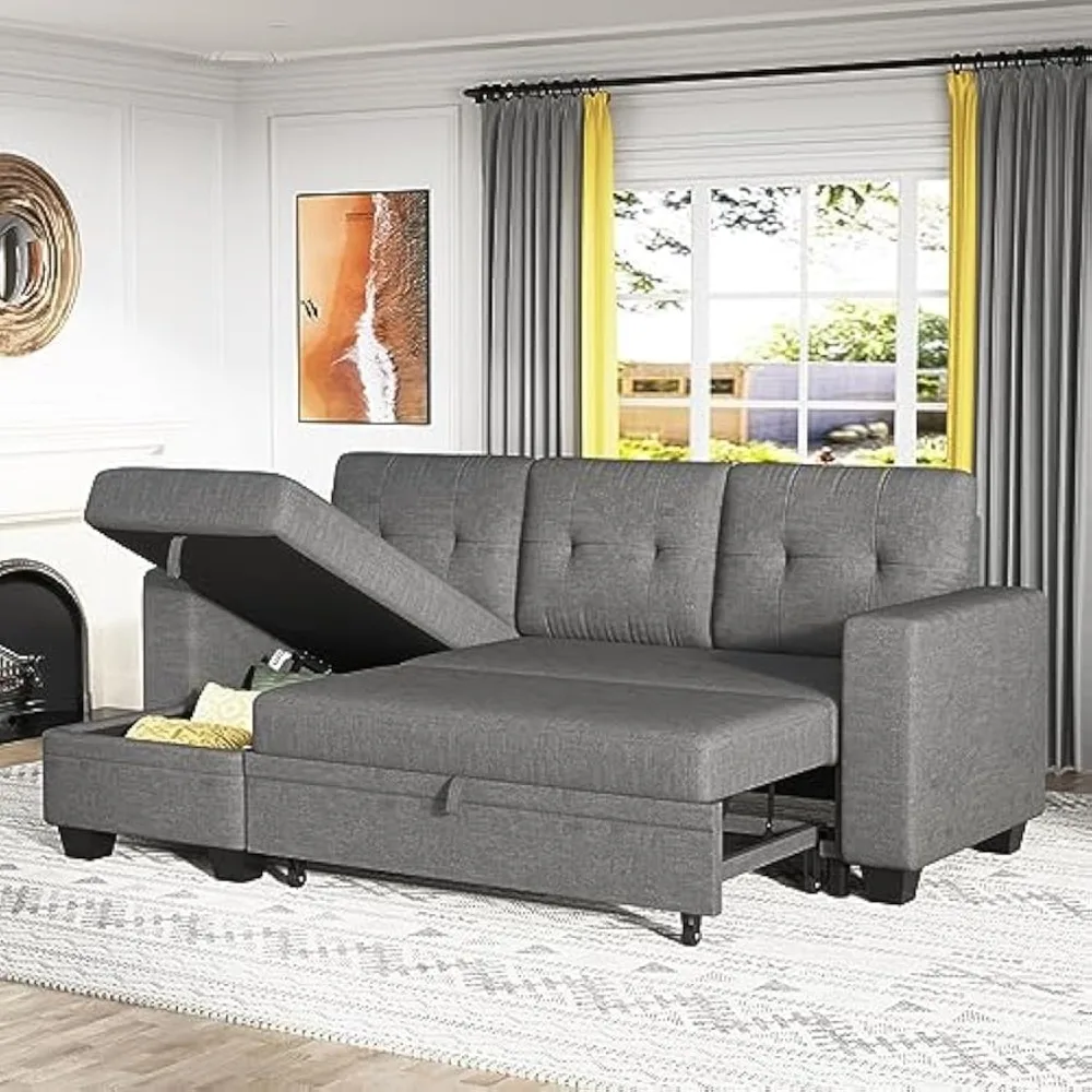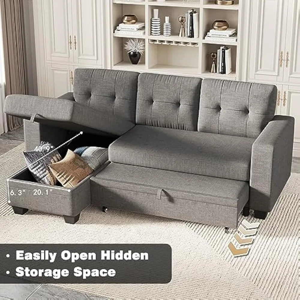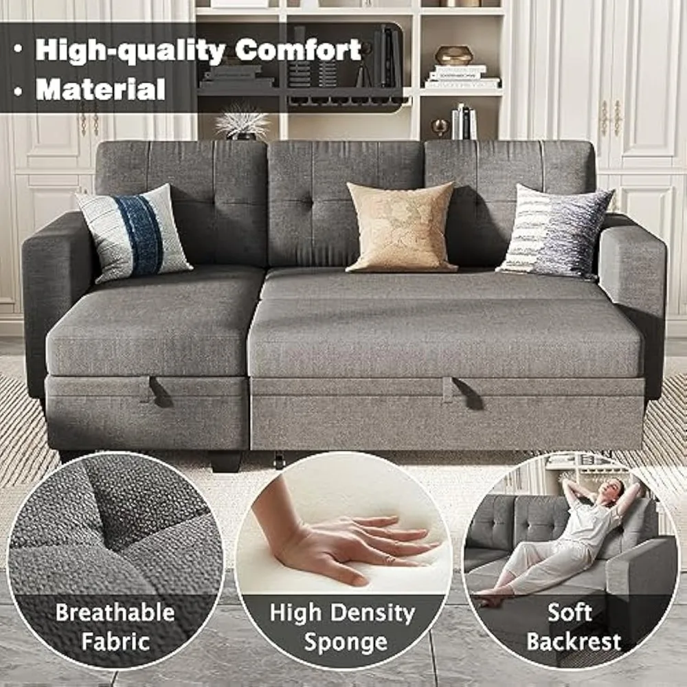 - Convertible Sofa Bed: There is a hidden bed part under the couch, up pull the rope then forward pumping, you will easily get a comfortable sofa bed. This sectional sleeper sofa can meet your different needs and provide your guests with a good sleeping solution, fit every corner of your house.